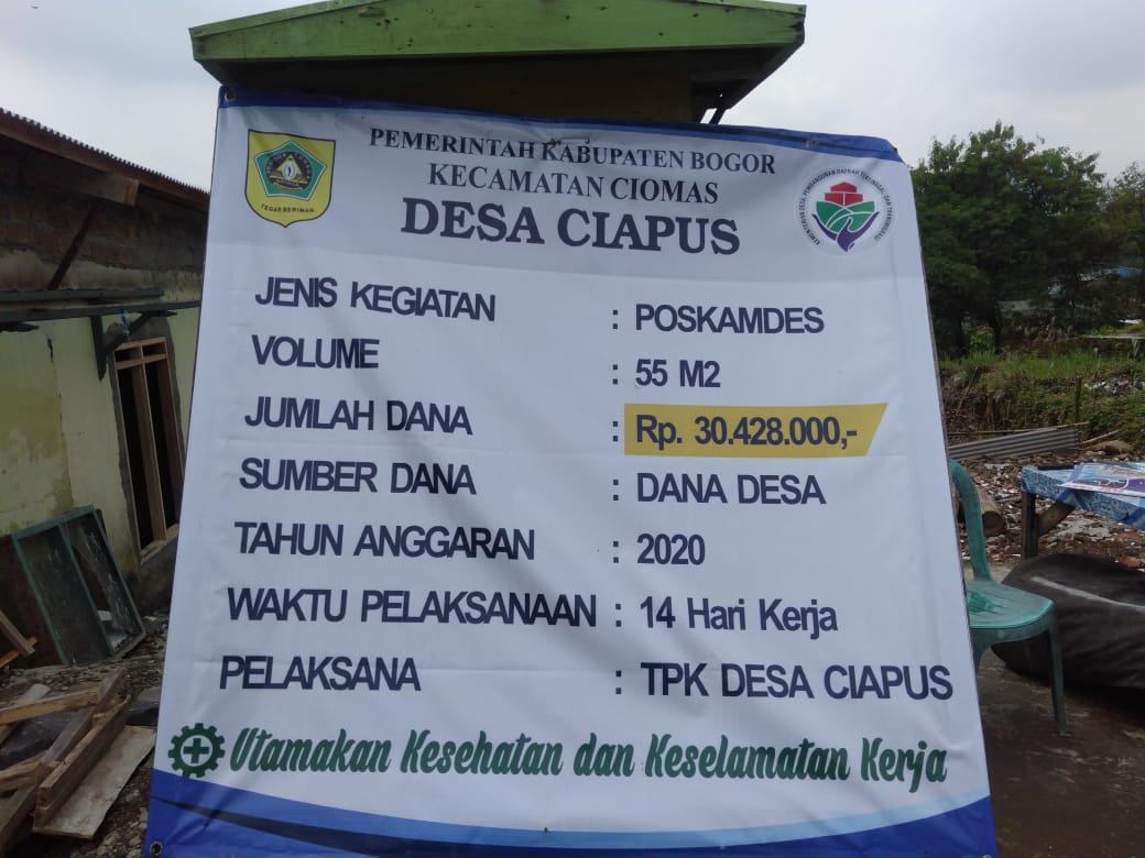 Desa Ciapus, Kecamatan Ciomas, Kabupaten Bogor saat ini tengah melakukan rehab pembangunan Pos Keamanan Desa (Poskamdes) yang lokasinya tidak jauh dari Mapolsek Ciomas, tepatnya di Perumahan Ciomas Permai (Ciper).