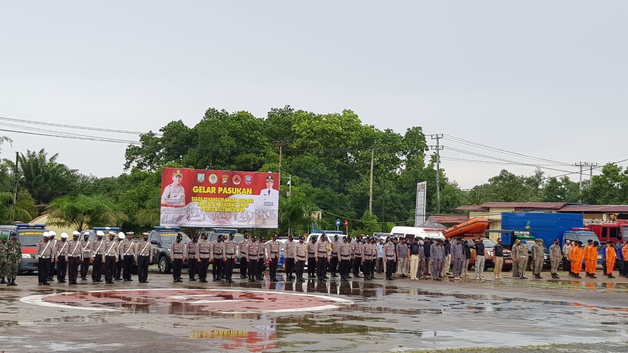 Bupati Belitung Timur Yuslih Ihza, S.E memimpin sekaligus menjadi pembina upacara gelar pasukan siaga penanggulangan bencana Kabupaten Belitung Timur, upacara gelar pasukan dilaksanakan dimako Polres Belitung Timur yang diikuti oleh TNI, POLRI, Pol PP, BPBD, Basarnas, Dishub dan Dinkes. Turut hadir dalam Upacara Gelar Pasukan ini juga Ketua DPRD, Kepala Basarnas Kab Beltim, Danramil Manggar, Danpos AU, Danpos AL, Kasat Pol PP serta perwira Polres Beltim. Upacara gelar pasukan ini sebagai bentuk kesiapsiagaan Kabupaten Belitung Timur dalam menghadapi bencana dimana dapat diketahui bersama saat ini diwilayah Kabupaten Belitung Timur juga sedang berada dalam pancaroba atau peralihan musim. Untuk itu, kesiapsiagaan dan sinergitas intansi terkait sangat penting dalam menghadapi ancaman bencana kedepan, walaupun kita berdoa dan berharap bersama-sama kabupaten Belitung Timur dapat terhindar dari segala bencana, upacara gelar pasukan dimulai dengan cuaca gerimis pasca hujan dari dini hari, walaupun cuaca gerimis tidak menurunkan semangat peserta upacara gelar pasukan,  jumat 06 November 2020.
