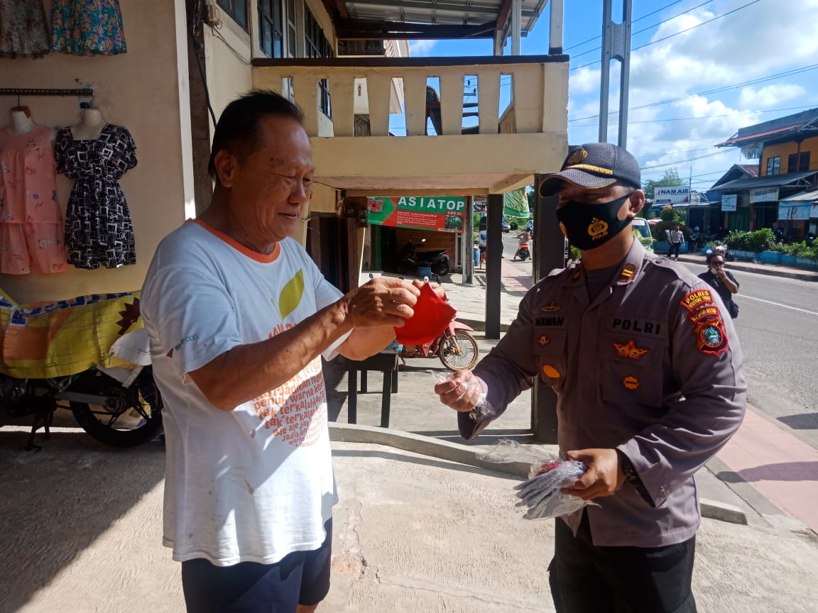 Kapolsek Gantung Iptu Wawan Suryadinata, S. Ik memimpin kegiatan pembagian masker bersama seluruh personil Polsek Gantung bersama dengan Seluruh Personil Koramil 414/03 Gantung.