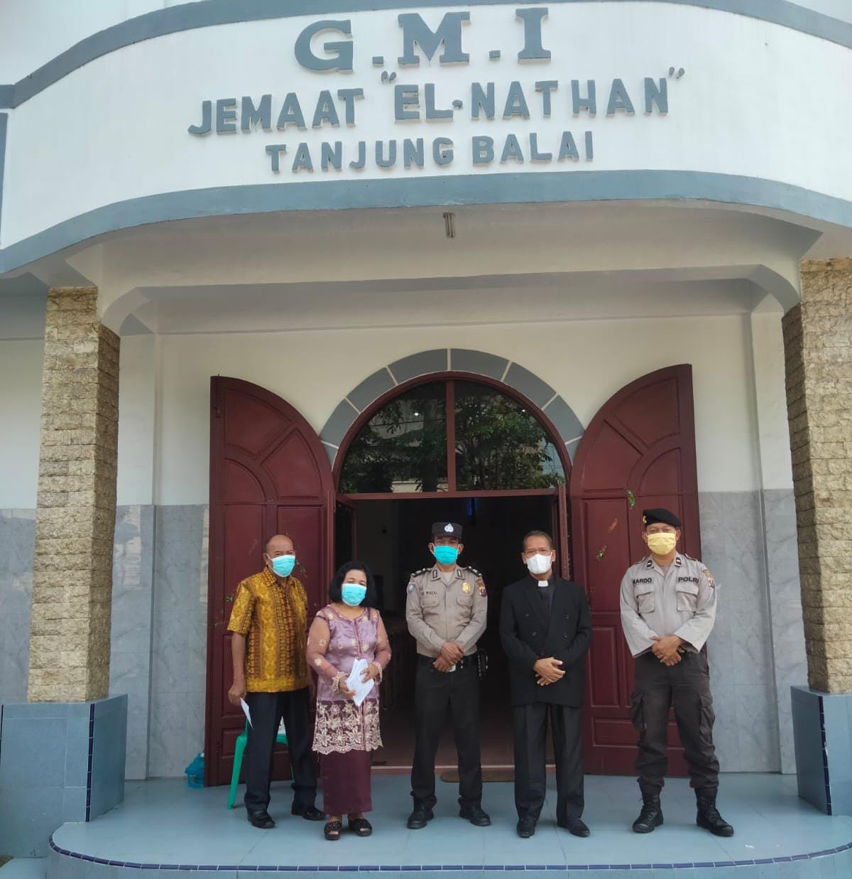 Personil Polres Tanjungbalai memantau langsung kegiatan peribadatan, mulai dari Jemaat datang kemudian masuk sampai keluarnya dari gereja Hingga mengecek barang bawaan dan menghimbau melaksanakan protokol kesehatan mengantisipasi Penyebaran Covid-19