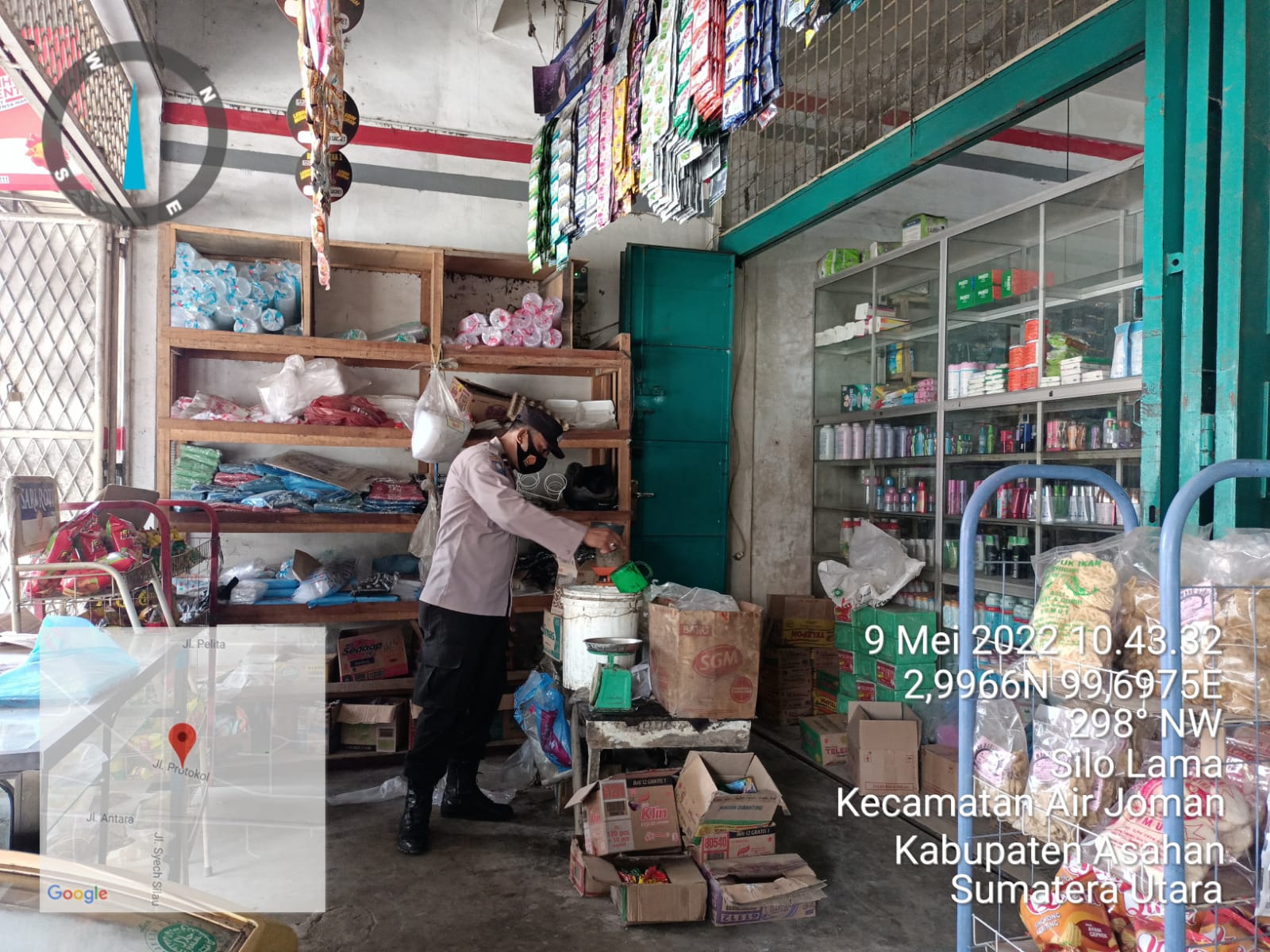 Kegiatan monitoring ini dilakukan oleh personel Bhabinkamtimas Aiptu M. Kodri yang menyambangi Grosir milik Amalia (47) di Kelurahan Binjai Serbangan Kecamatan Air Joman. Senin (09/5/2022).