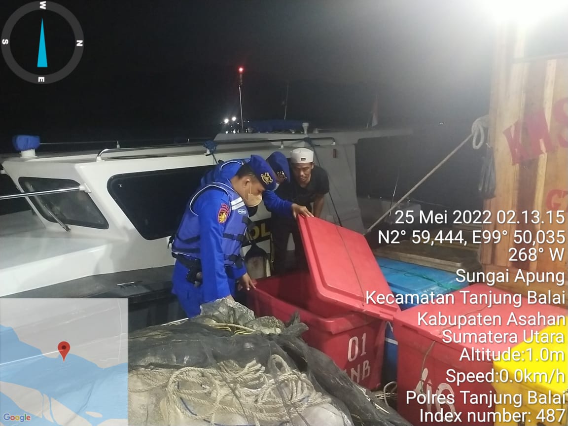 “Seperti pada Hari Rabu Tanggal 25 Mei 2022, sekitar Pukul 02.14 Wib, kapal Patroli KP. II- 2027 Satpolairud Polres Tanjungbalai yang diawaki team regu IV yaitu Bripka L. Gurning dan Bripka Juanda melakukan pengejaran terhadap Satu unit kapal yang datang dari laut tujuan Tanjungbalai, diposisi atau koordinat N = 2° 59′ 444″ E = 99° 50′ 035″ kapal tersebut dapat dihentikan,” ucap Sianturi.