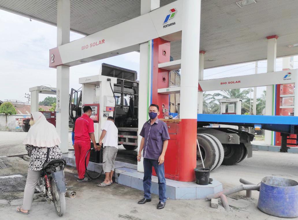 Pengecekan stok BBM (Bahan Bakar Minyak) Kanit Intel Polsek Lima Puluh Polres Batubara melakukan monitoring langsung ke tempat 3 (tiga) titik lokasi SPBU.