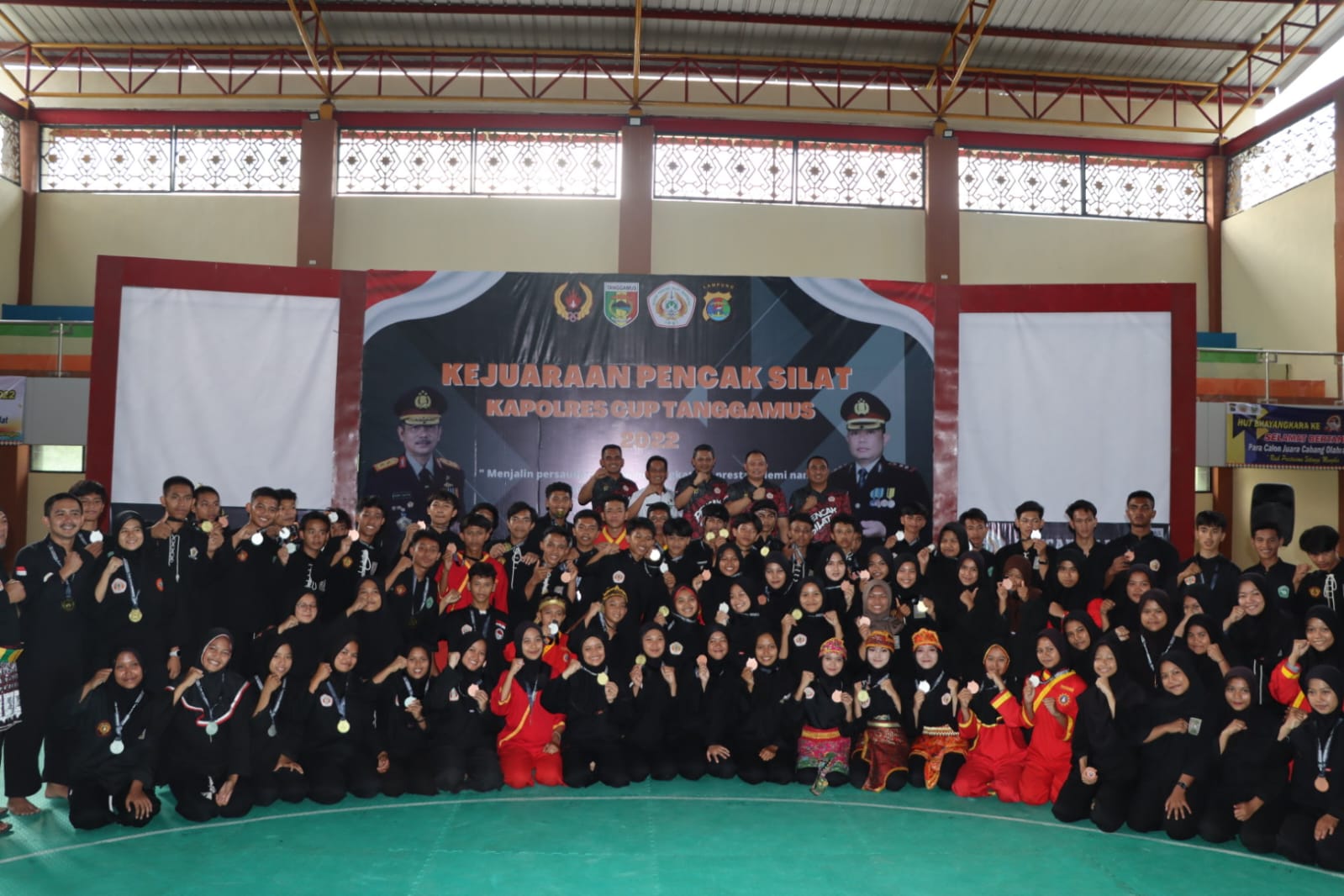 Meriahkan Hari Bhayangkara ke 76, Polres Tanggamus bekerjasama dengan Pemkab, KONI dan IPSI menggelar kejuaraan pencak silat Kapolres Tanggamus Cup di GOR Ratu Dusun Waysom Pekon Kota Agung.