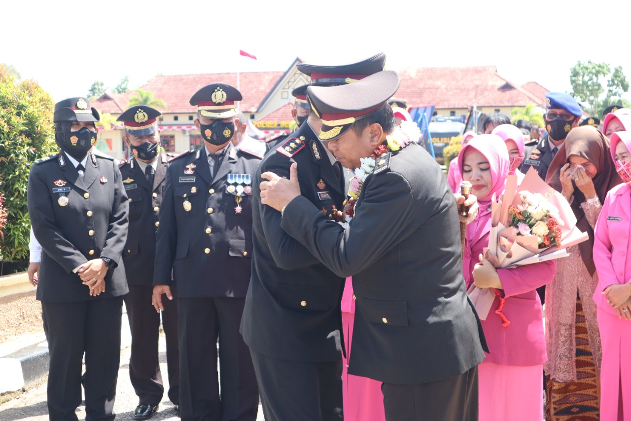 Kapolres AKBP Taufik Noor Isya, SIK mewakili seluruh personil Polres Belitung Timur dan institusi Polri mengucapkan selamat kepada Kompol Sukimin untuk menjalankan masa Purna.