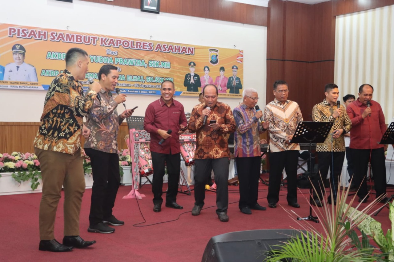 Polres Asahan melaksanakan malam pisah sambut Kapolres dari AKBP Putu Yudha Prawira SIK MH kepada AKBP Roman Smaradhana Elhaj SH SIK MH di Pendopo Rumah Dinas Bupati Asahan Jalan Jend. Sudirman Kelurahan Mekar Baru Kec.Kisaran Barat Kab. Asahan, Selasa (09/8/2022) malam.