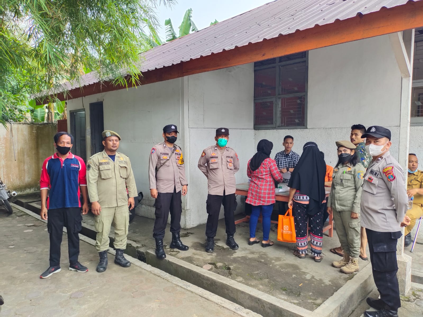 Lima orang dari Personil Polsek Lima Puluh Polres Batubara melaksanakan monitoring dan pengamanan kegiatan penyaluran dana bantuan Program BLT BBM dan Sembako/BPNT tahun 2022.