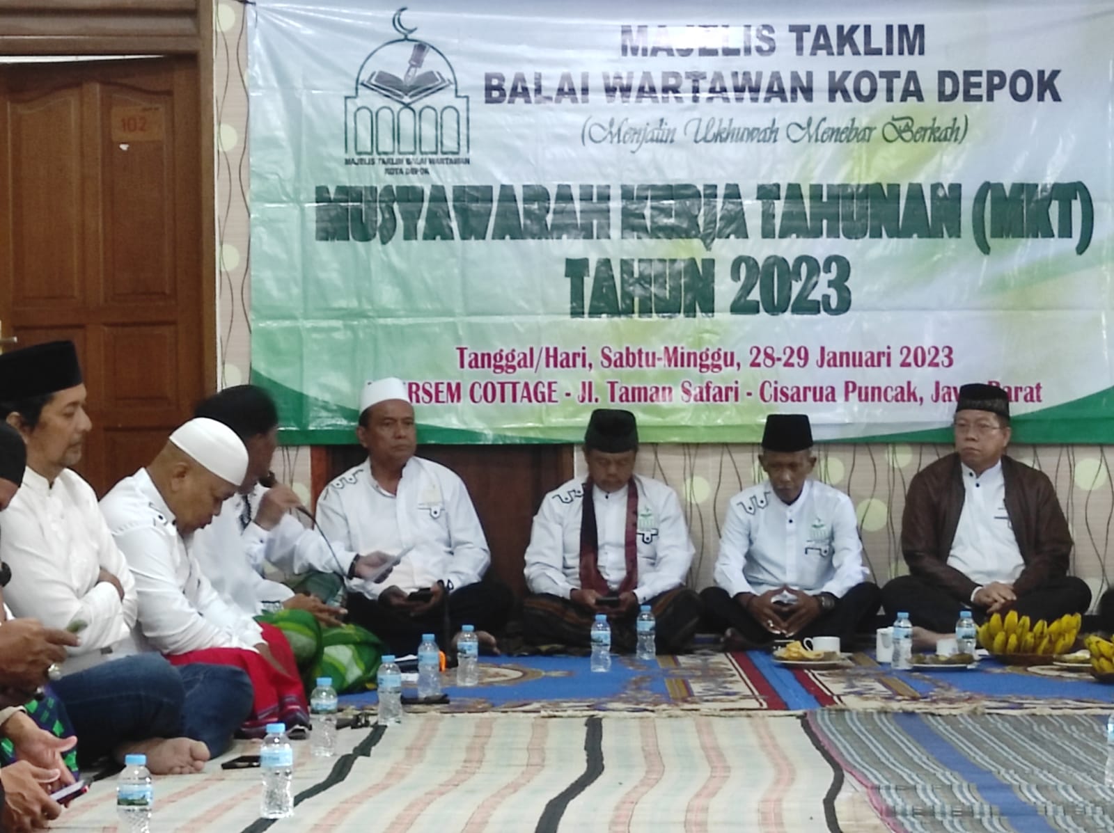 Untuk memantapkan kegiatan Majelis Taklim (MT) Balai Wartawan Kota Depok tahun 2023 serta menjalin silaturrahmi sesama wartawan dan keluarga wartawan, pengurus  MT Balai Wartawan Kota Depok menggelar musyawarah kerja perdana selama 2 hari mulai tanggal 28 -29 Januari 2023 yang diadakan di Ubersame Cottage, Cisarua Puncak Bogor.