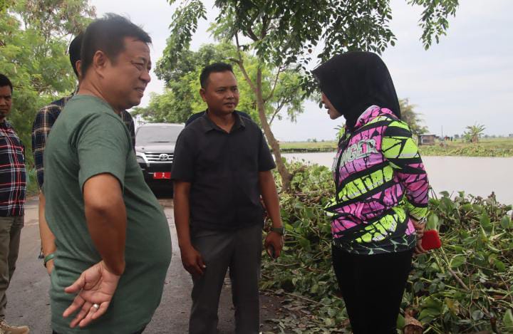 Wakil Bupati Cirebon Hj. Wahyu Tjiptaningsih, SE, M.Si meninjau pengerukan dan pembersihan sungai tumarutis di Kecamatan Kapetakan, Rabu (15/02/2023)