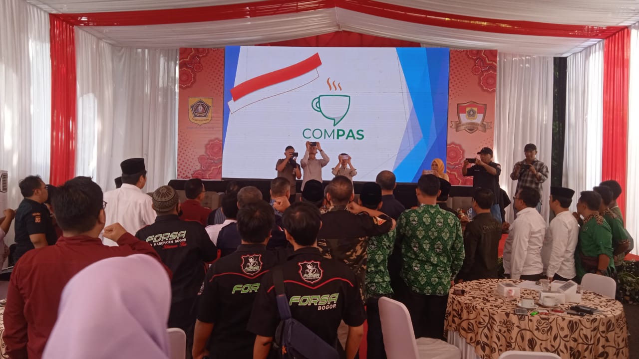 Coffee Morning Pemerintah Bersama Organisasi Kemasyarakatan (COMPAS) Angkatan I dengan Tema “Upaya Mensukseskan Penyelenggaraan Pemilu Tahun 2024” dihadiri oleh perwakilan 27 Organisasi Kemasyarakatan (Ormas) yang diwakili 3 orang per Ormas, digelar di halaman Kantor Bakesbangpol Kabupaten Bogor, Selasa (30/5/23)