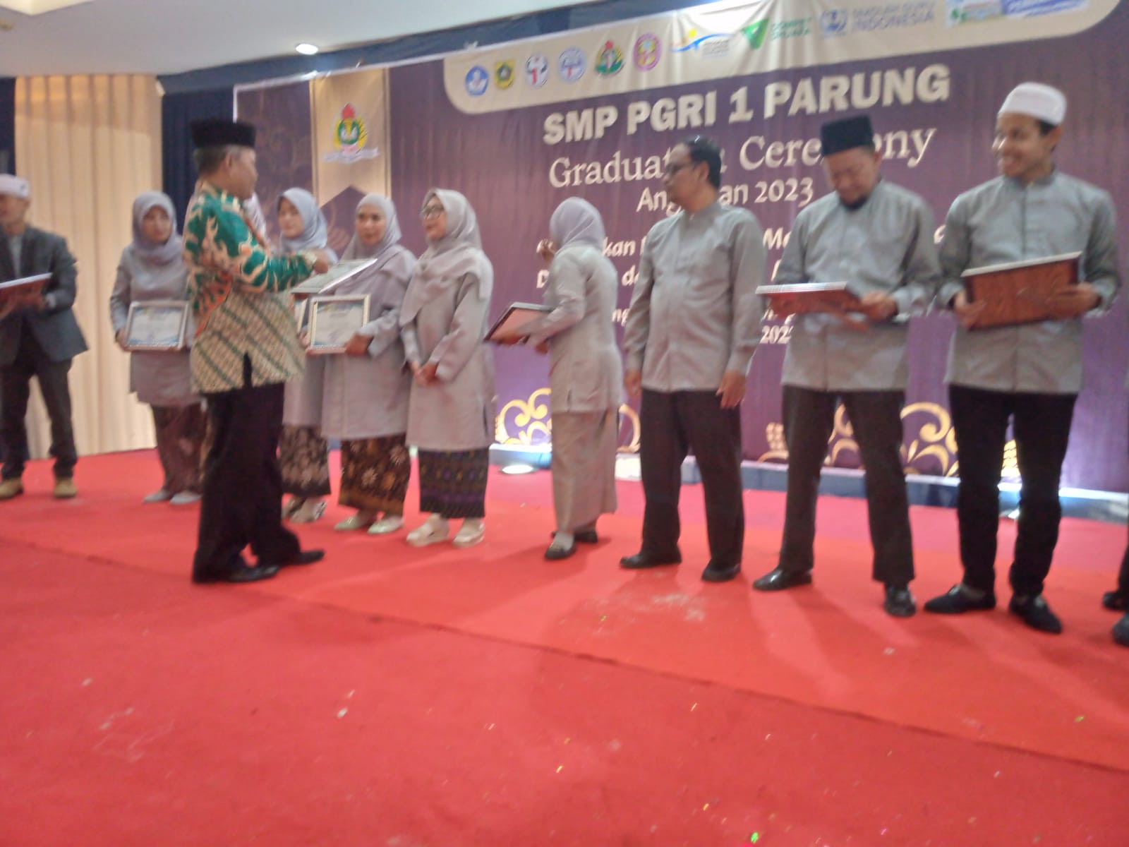 Kegiatan wisuda tersebut tampak dihadiri oleh Ketua Yayasan (YPLP) Ukay Sukarna, M.Pd, Kepala SMP PGRI 1 Patung Satria, S.Pd. serta tamu undangan diantaranya Kades Jampang Wawan Hermawan, A.Md., Pembina SMP 1 Parung Iwan Wangsa Muharam, Sekum PGRI Cabang Kemang Andreas K.W., S.Pd. dan sesepuh SMP PGRI 1 Parung Nilan Kumis.