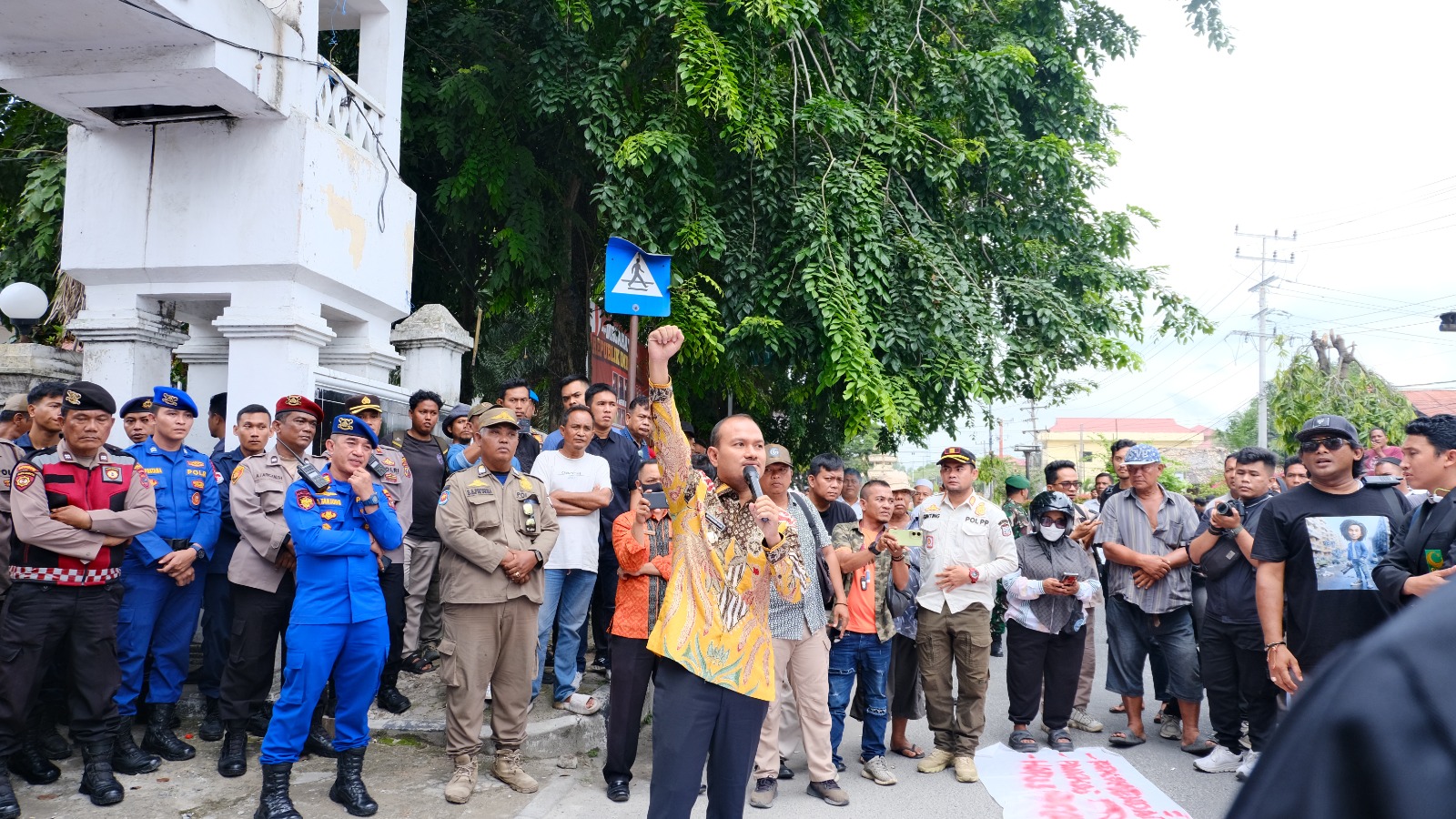 Aksi tersebut mendapat pengamanan dari aparat kepolisian dan TNI. Setelah ditemui Wali Kota dan unsur Forkopimda, para pengunjuk rasa membubarkan diri dengan tertib dan damai. (Mariyani)